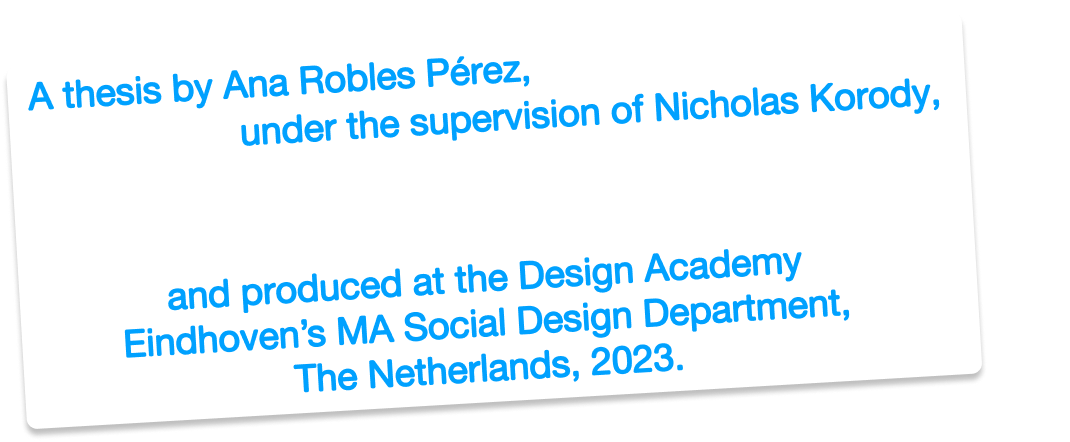 In this sense, Beware of dog! is presented as an investigation that contributes to rechallenge the dichotomy inherent in the current conditions of dog-keeping practices. Whether it is via Youtube’s showcase, dog marriage services, AI image generators, or activism discourses, these tools support the construction of a methodology that employs both visual and descriptive approaches to examine dog-human interactions and observations. By defamiliarizing common and often overlooked aspects of dogs' daily routines, this study aims to provide fresh and informative insights into their experiences, benefiting not only from an extra dose of colloquial language but also from the narrator’s hybrid position.