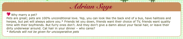 Marryourpet.com website. Screenshot of the page Ask Adrian of Marryyourpet.com.